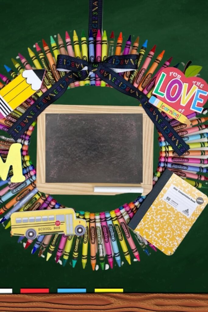 This vibrant crayon wreath is a great way to greet people at the door or on the wall of any classroom.