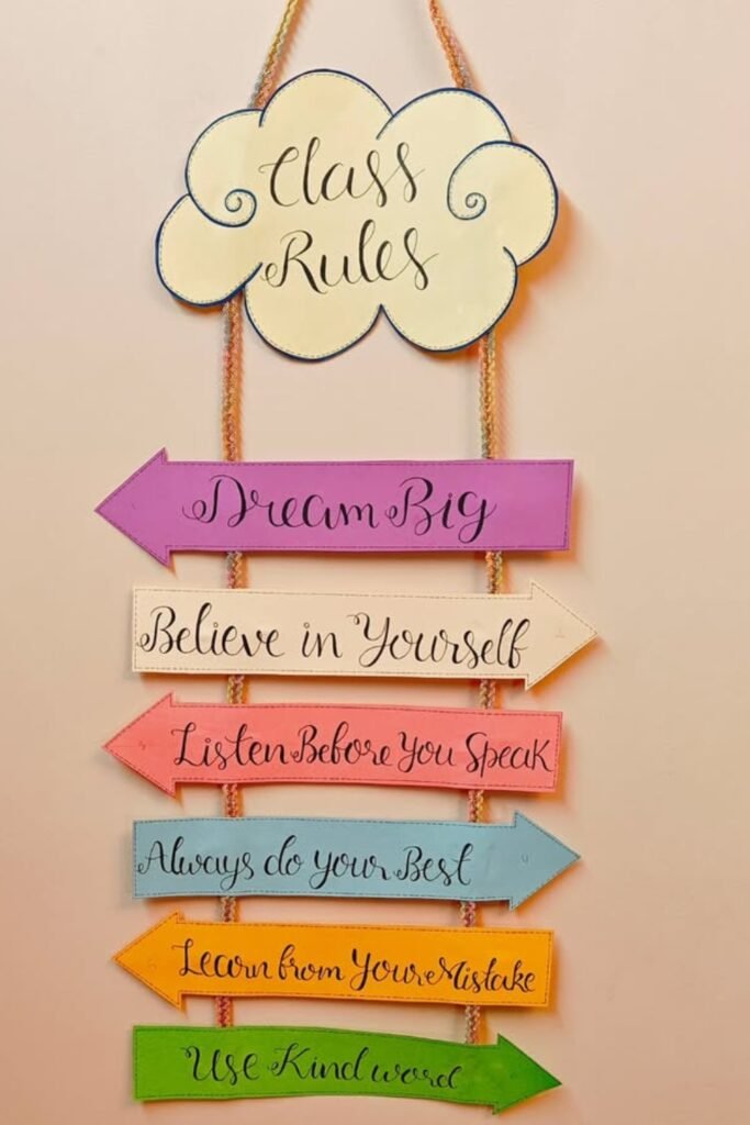 This happy Class Rules sign gives your classroom decor both order and inspiration.