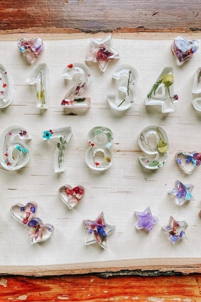 These resin number molds packed with dried flowers will turn studying into art. They are great for math corners, sensory trays, or displays in the classroom that combine learning with fun.