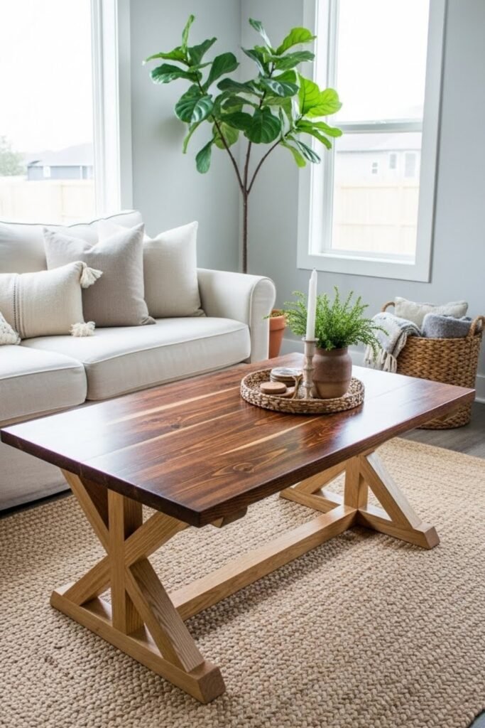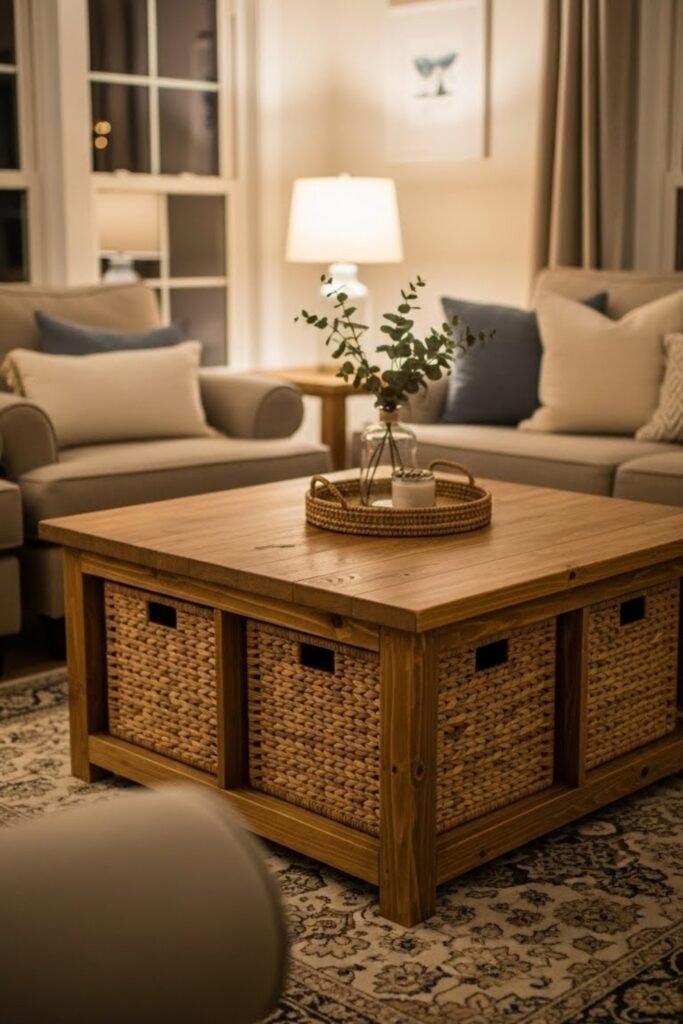 Building a DIY coffee table gives you full control over both function and style. You can choose the exact size, height, and storage features that work for your living room.