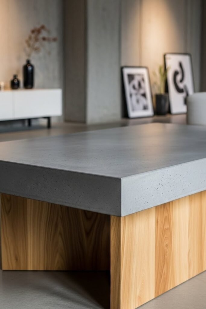 A concrete-top coffee table adds a bold, modern feel to your living room. Create a simple mold using melamine boards and pour concrete for a smooth finish.