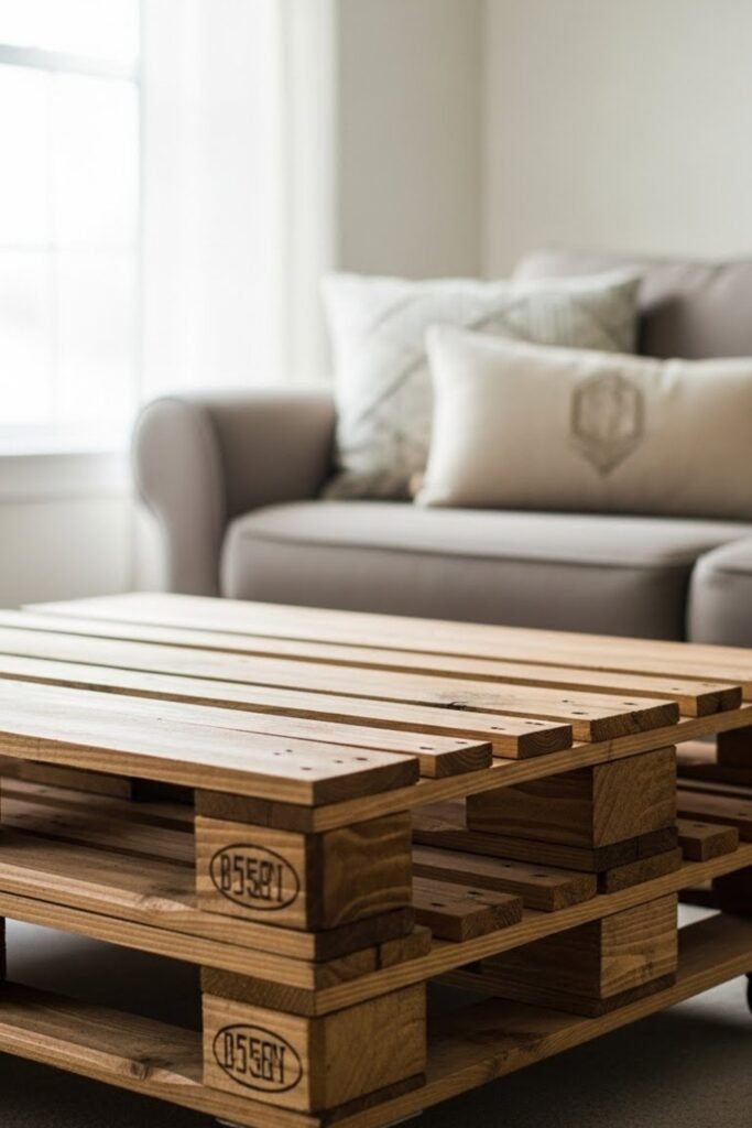 A pallet coffee table is a budget-friendly way to add rustic charm to your living room. Use heat-treated pallets, sand them smooth, and stack or frame them into a sturdy base.