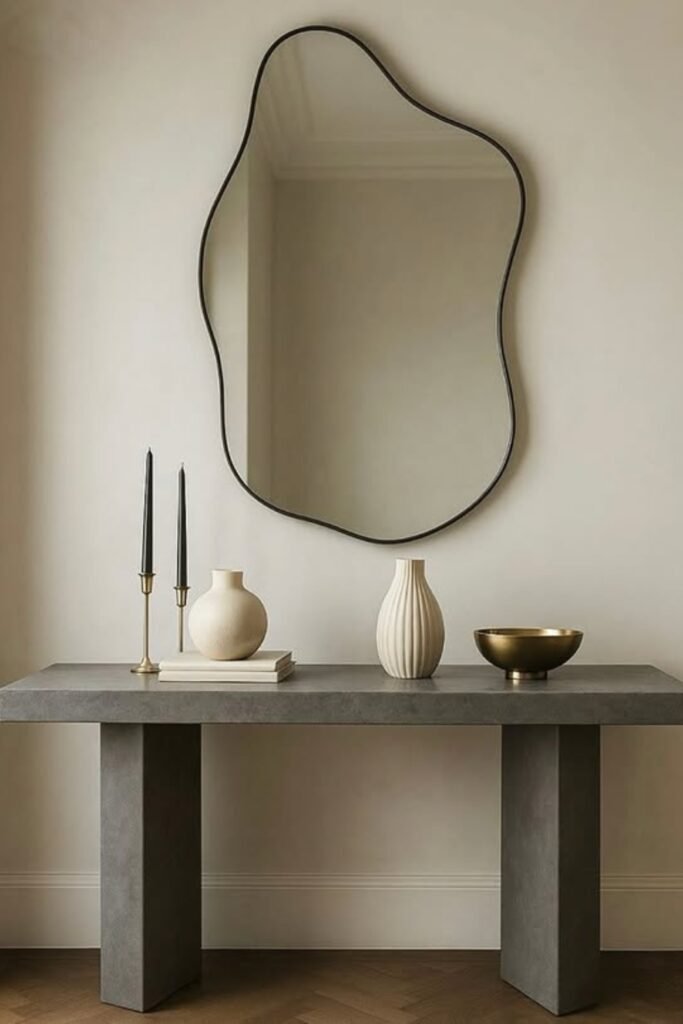 Concrete-style consoles ground modern interiors, offering weight and presence without relying on decorative detailing or excessive ornamentation visually.
