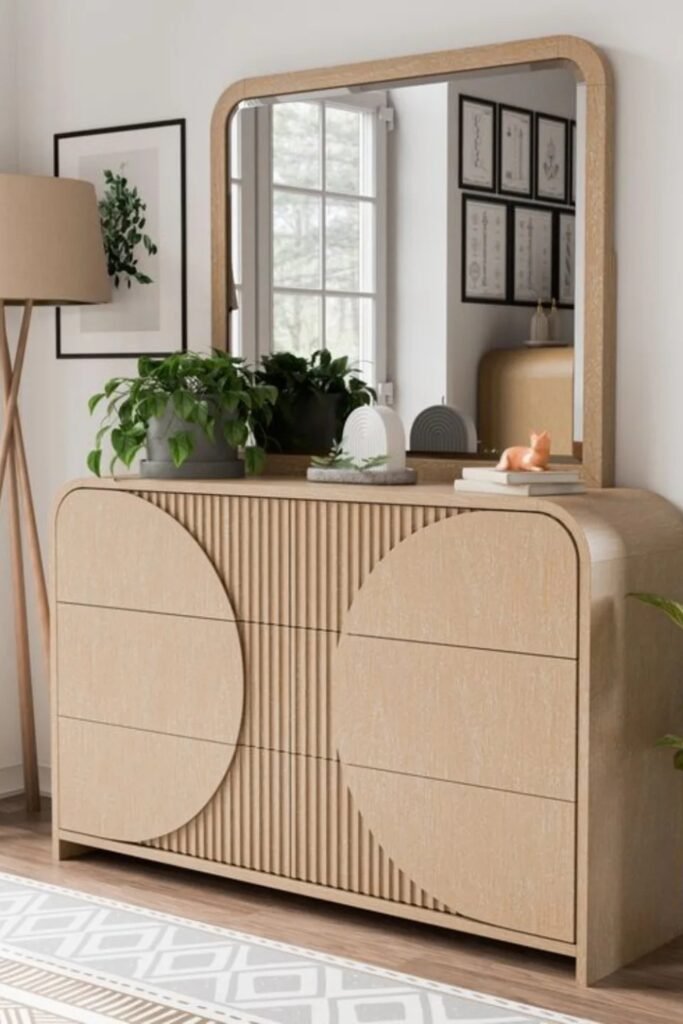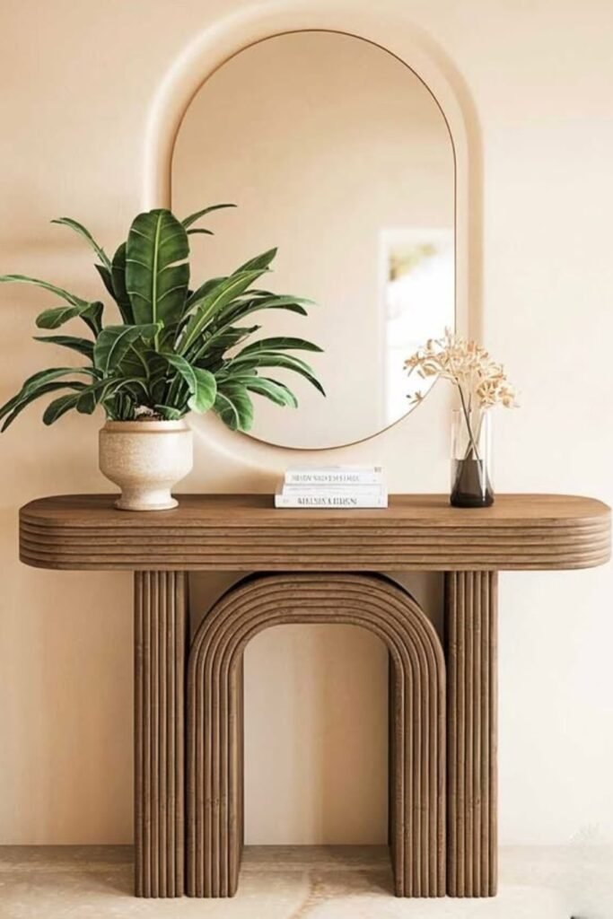 An arched fluted console becomes instant art, perfect for minimalist homes craving texture without extra decor pieces visually.