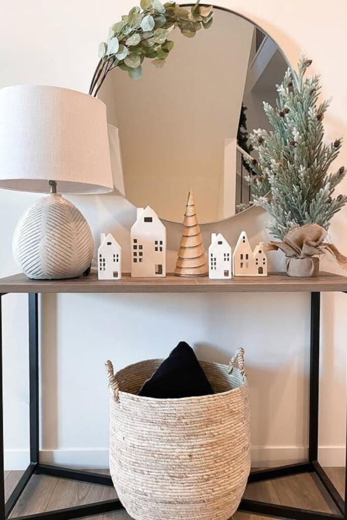 It belongs in entryways where baskets below quietly organize shoes, throws, or seasonal accessories daily home traffic needs.