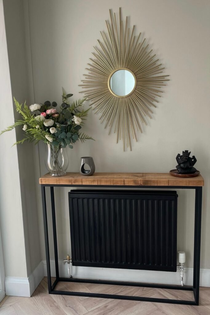 Radiator-friendly consoles solve dead wall space by bridging heat sources without blocking airflow or visual balance issues.