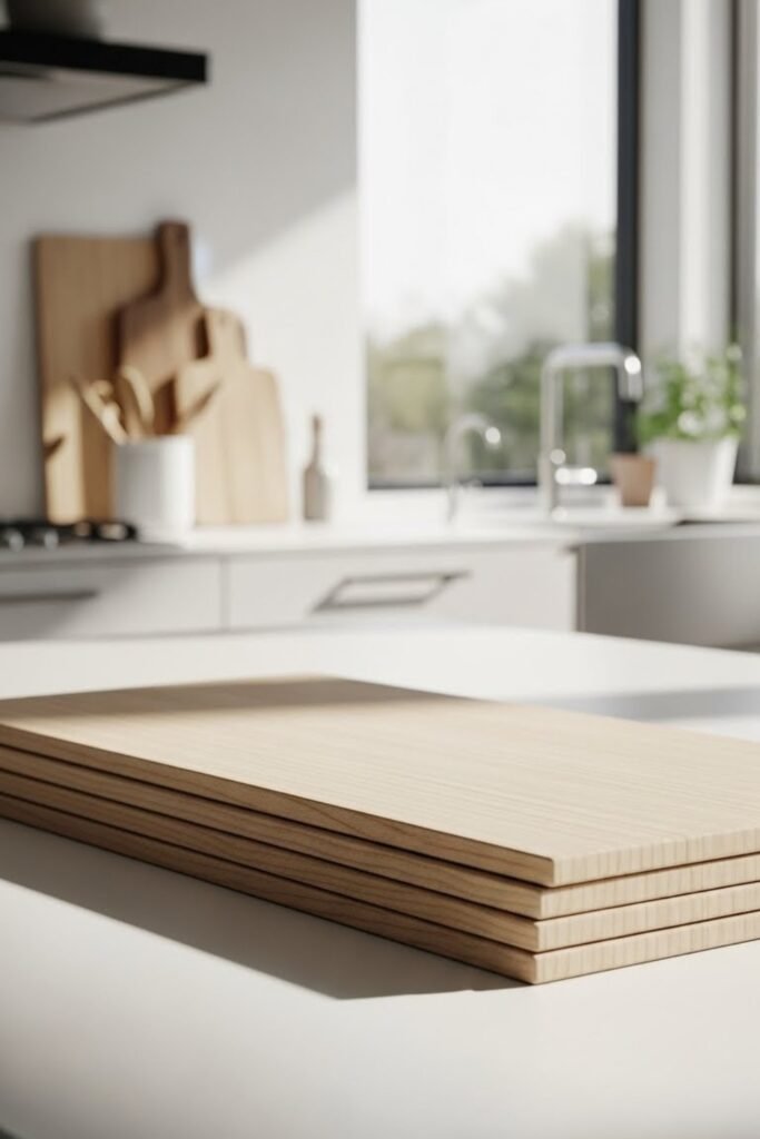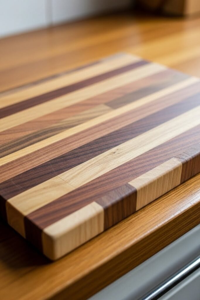 A thin profile cutting board is lighter and easier to store than traditional thick boards. Use hardwood but reduce thickness carefully to avoid warping.