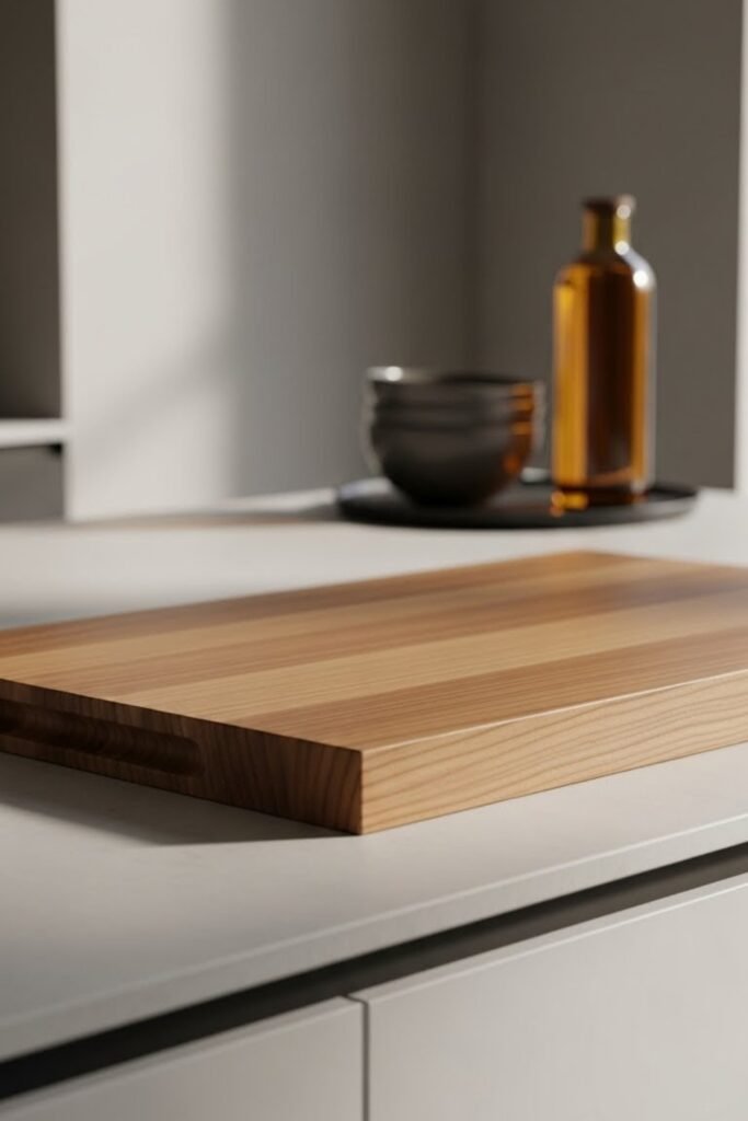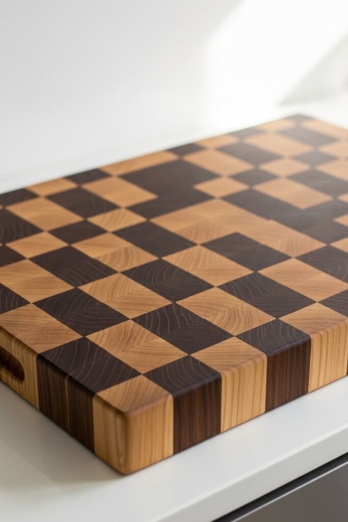 A minimalist cutting board focuses on clean lines and simple shapes. Use one solid wood piece with straight edges and no added features.