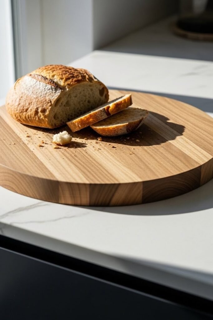 A round cutting board offers a soft, modern alternative to standard rectangles. Cut a circle using a router or jigsaw, then smooth the edges evenly.