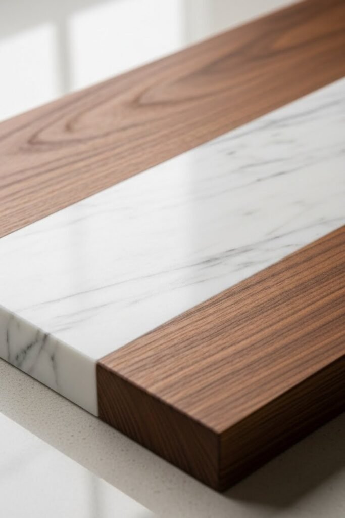 The marble area works well for cheese or dough, while wood handles chopping. This design adds a luxury touch to everyday kitchen use.