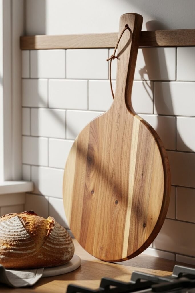 This style saves counter space and turns the board into functional décor. Sand the edges well so the hanging area stays smooth and strong.