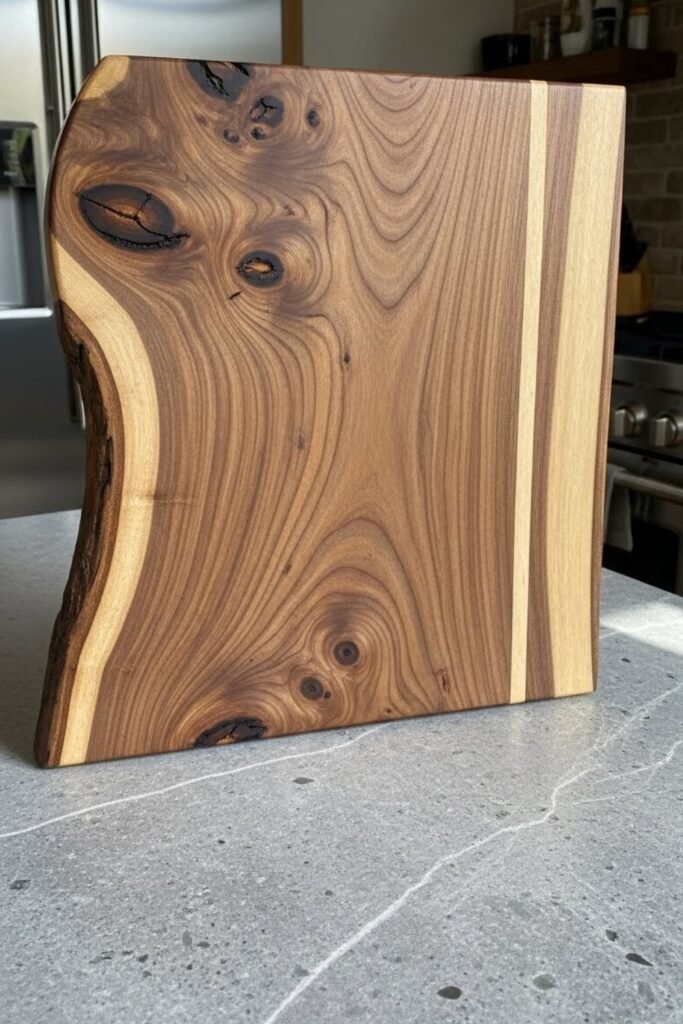 Flatten, sand carefully, and seal with food-safe oil. This style fits rustic or modern kitchens and makes every board completely one of a kind.