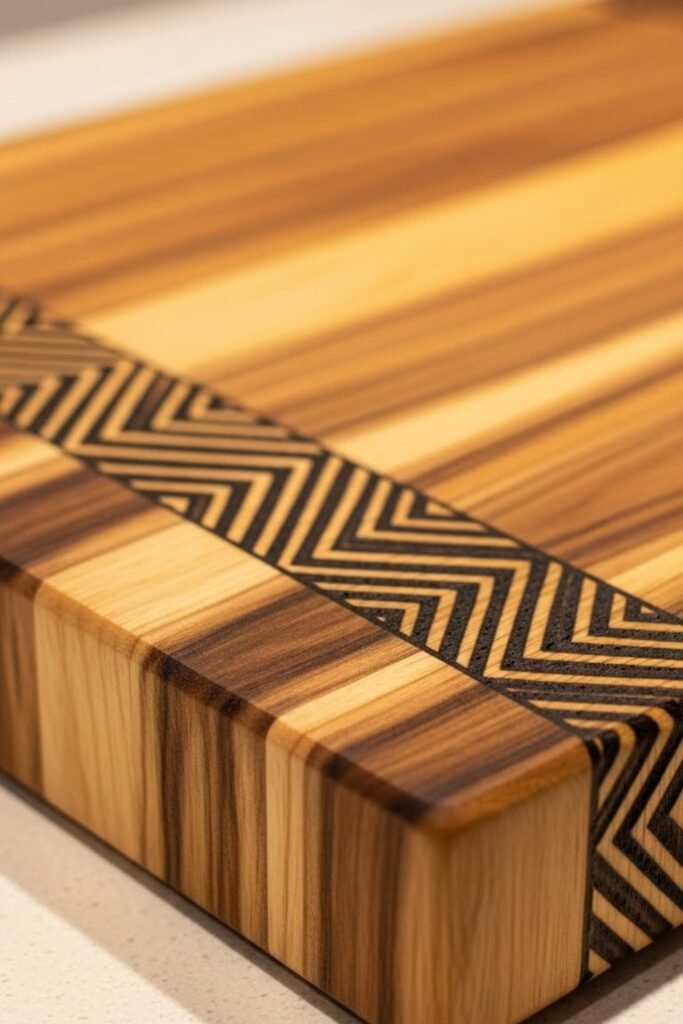 Keep inlays minimal so the board stays functional. This technique adds craftsmanship and visual interest without overpowering the main cutting area.