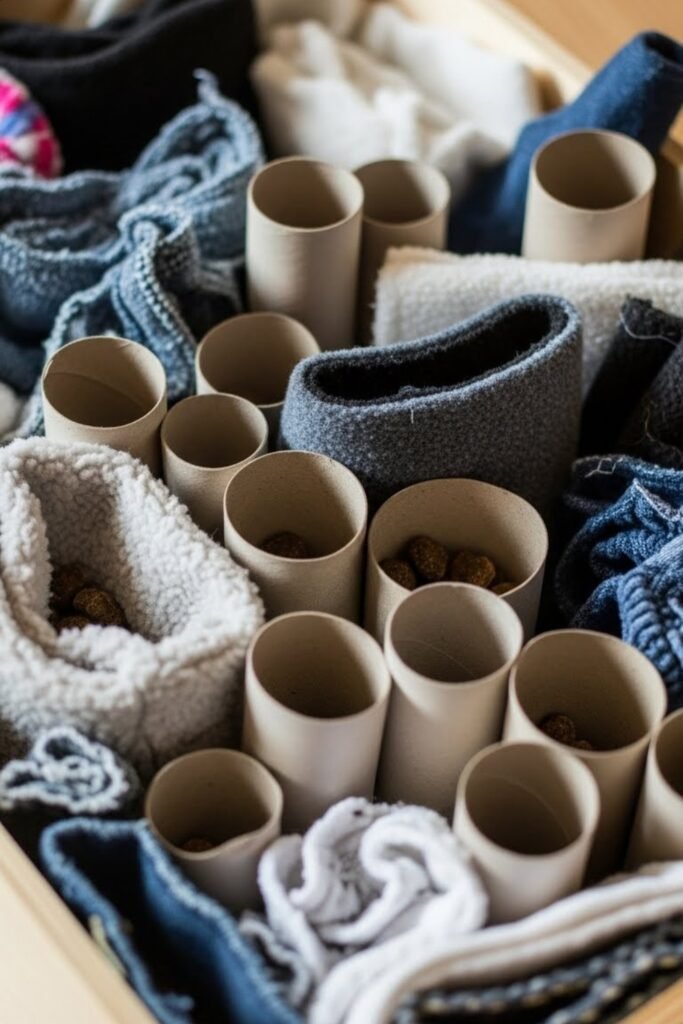 Fill a shallow box with fabric scraps, paper rolls, and hidden treats. Dogs must sniff and search through the materials to find rewards.
