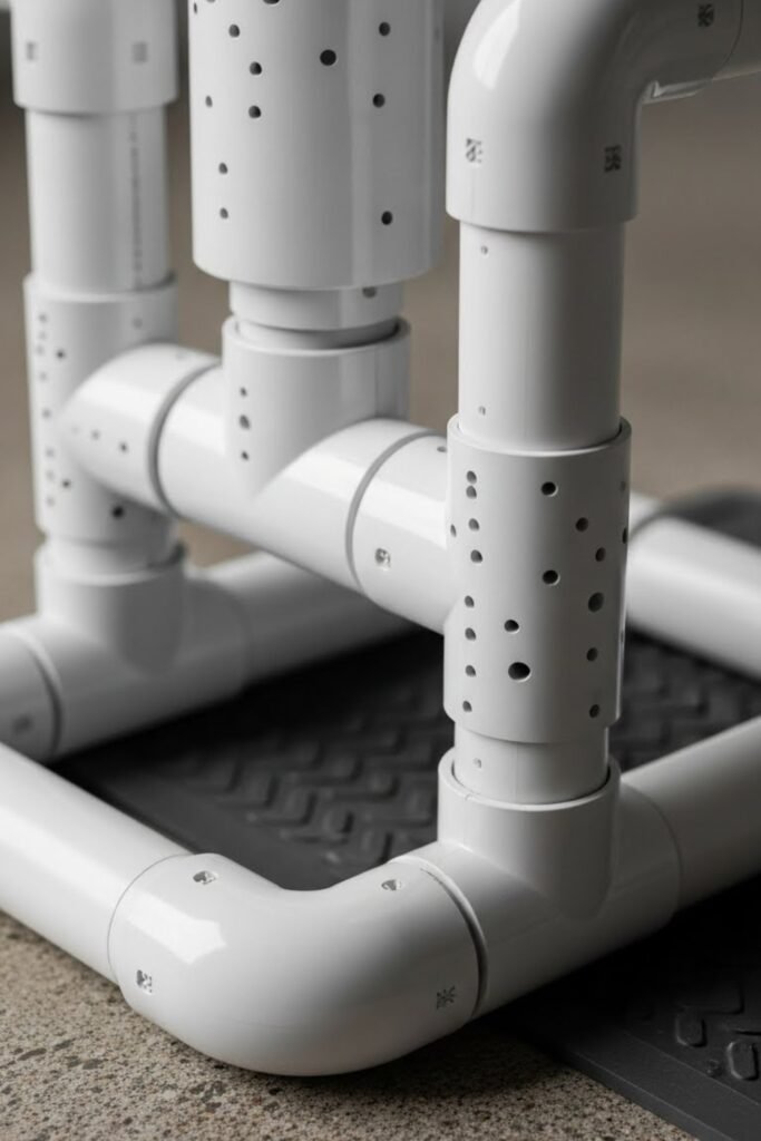 Use short PVC pipe sections with drilled holes to make a treat dispenser. Place dry treats inside and cap the ends. Dogs roll and push the toy to release food slowly.