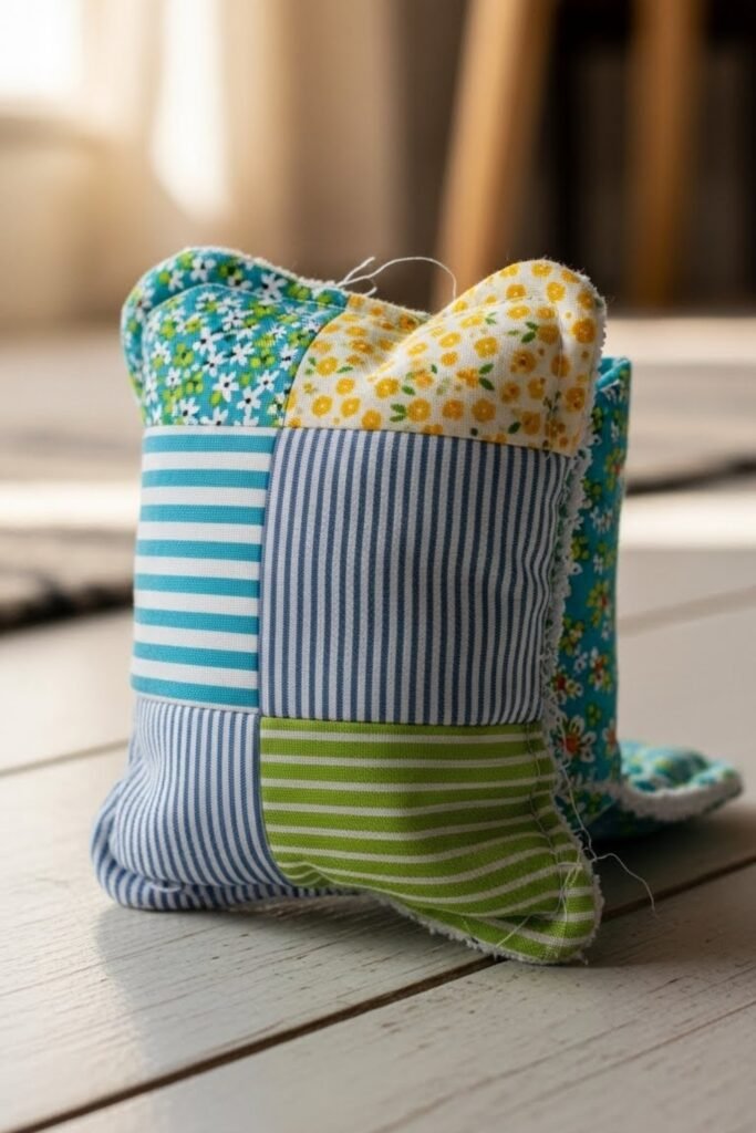 This toy works well for chewing, shaking, and tossing. It’s quick to make and ideal for supervised play.