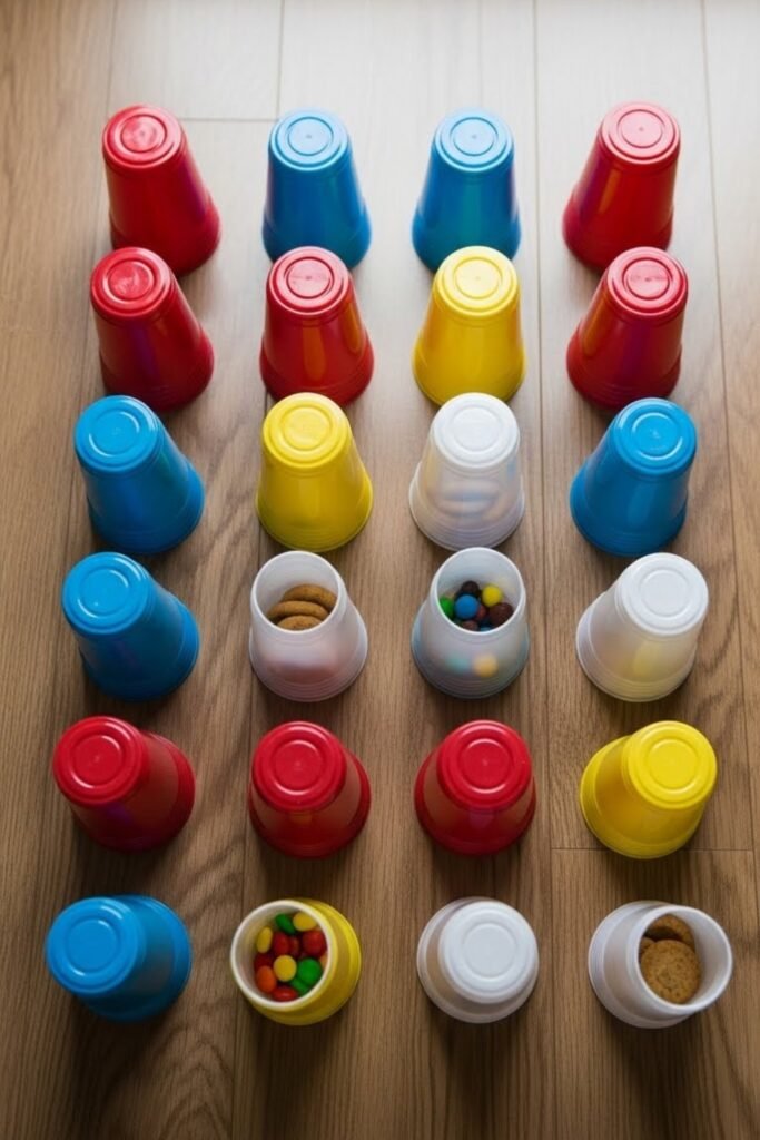 Flip plastic cups upside down and hide treats under a few of them. Let your dog sniff and knock over the cups to find the rewards.