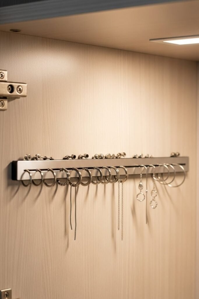 You can arrange by size or color for easy access. This idea works best for hook earrings and suits minimalist or industrial interiors.