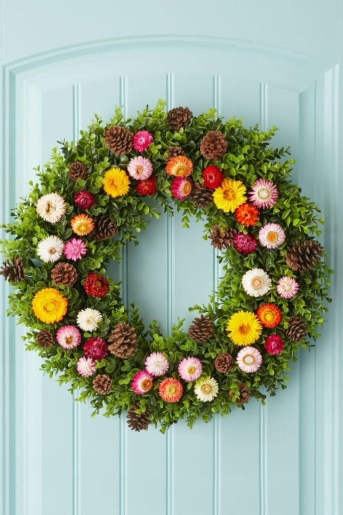 Bright Blooms & Pinecones Wreath