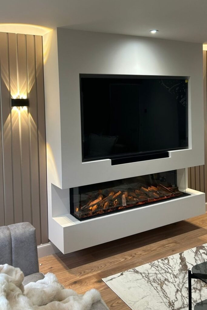 This suits modern spaces where a linear fireplace and TV blend seamlessly, giving your wall strong architectural presence without overwhelming decor.