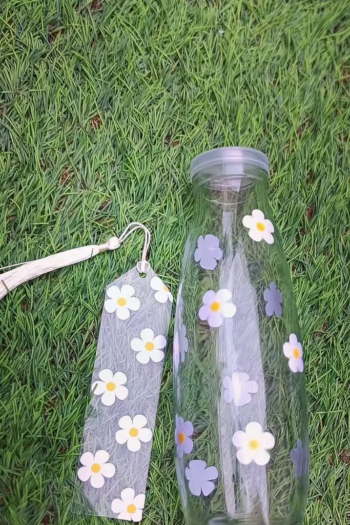 Soft daisy decals turn this bottle into refreshing décor perfect for desks, bedside tables, or reading corners needing gentle repeating visual accents.