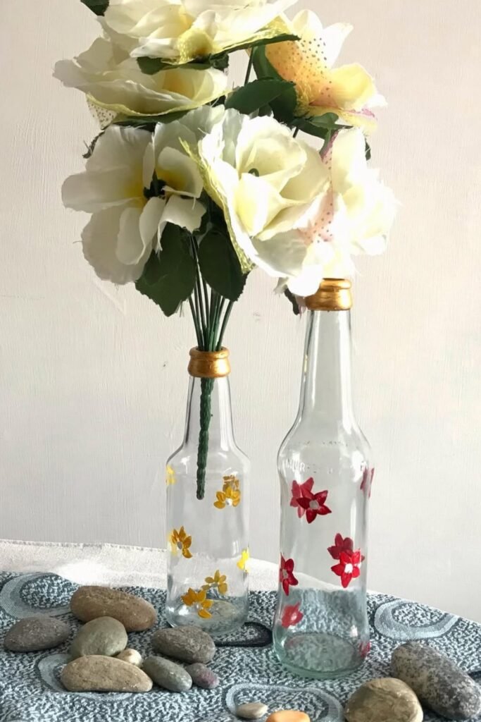 Painted floral bottles create charming décor pieces that fit beautifully on narrow shelves, bright window corners, or cozy entry spaces needing softness.
