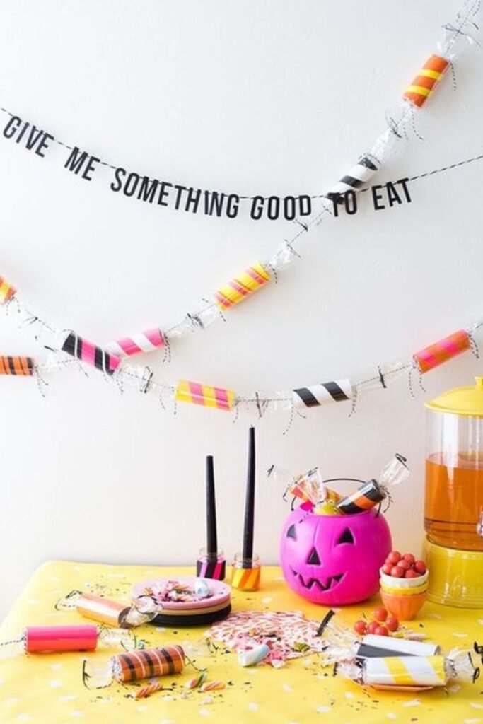 This setup is perfect for parties or trick-or-treat night. It looks festive and doubles as décor while guests enjoy their sweets.