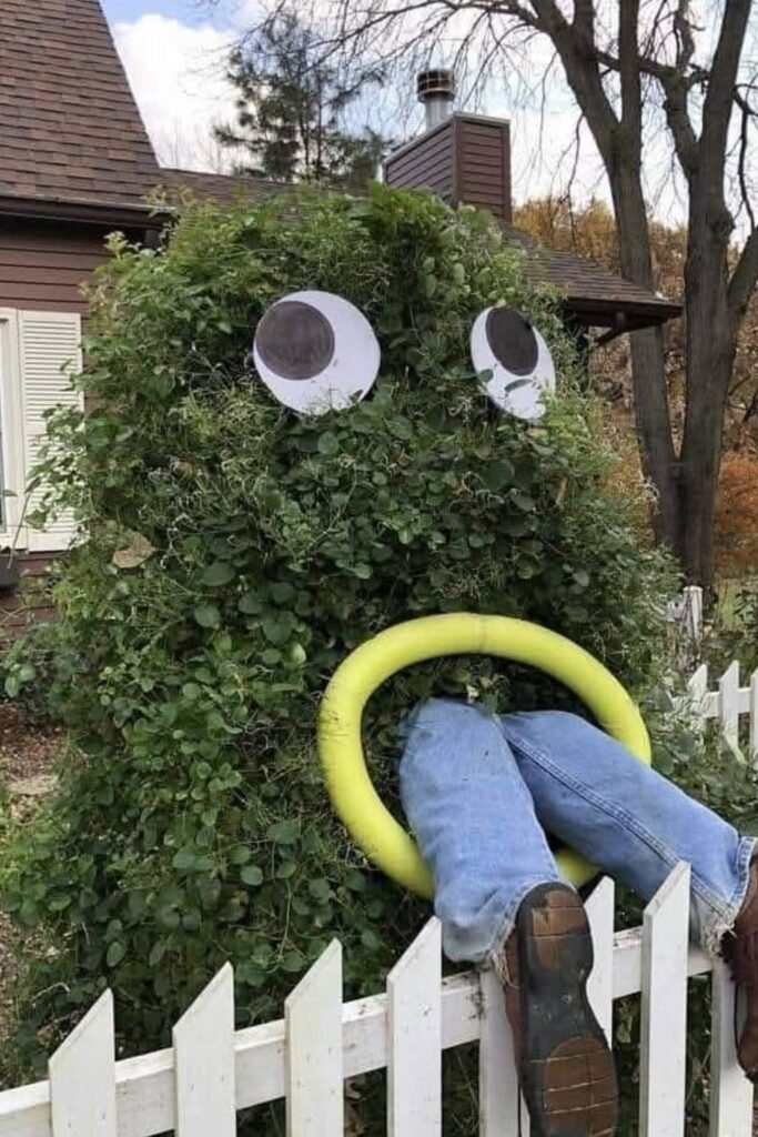 Transform your large bush into a hungry monster that will grab everyone’s attention. Cut two big circles from cardboard or foam board and paint them to look like eyes.