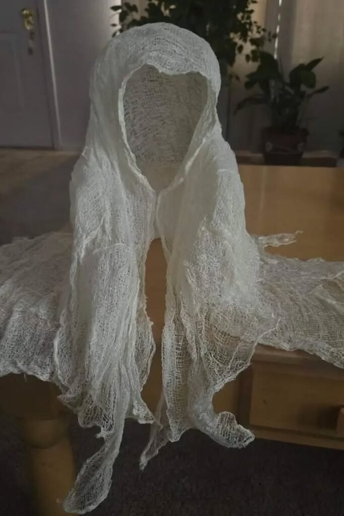 You can make a ghost that stands on its own with just cheesecloth and fabric stiffener.