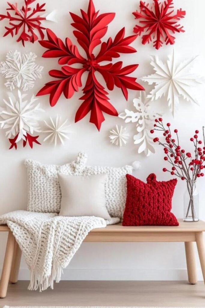 Large-scale paper shapes transform plain walls that need quick character and seasonal presence without any commitment to heavy artwork or permanent fixtures.