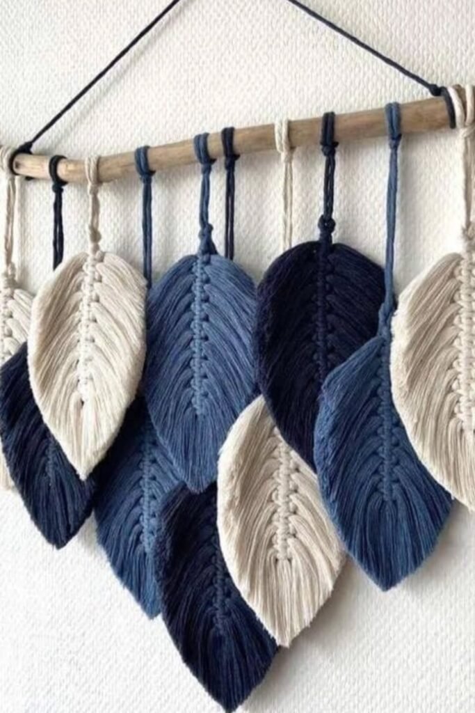 Textured macrame leaves enhance blank walls that lack softness, especially in rooms needing gentle tactile detail without strong color distraction.