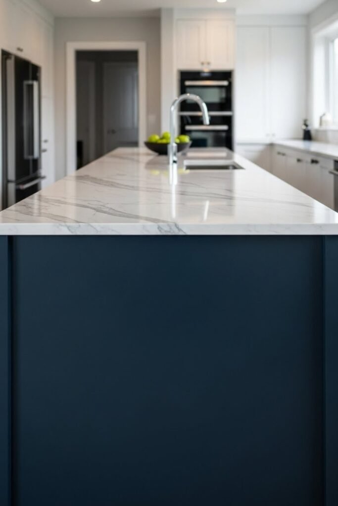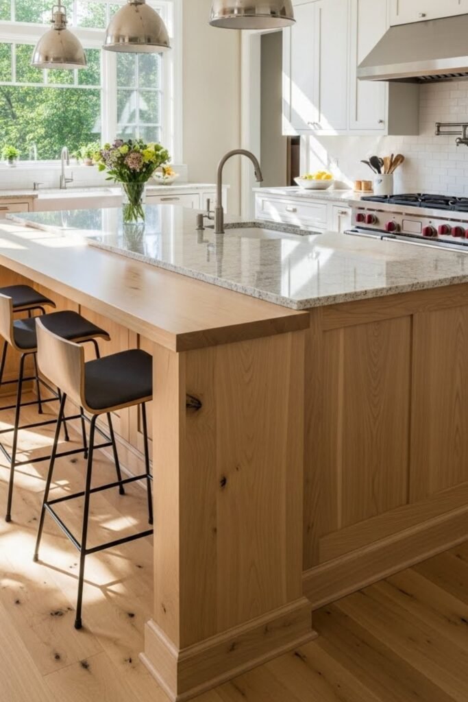 A two-tone island adds visual contrast by mixing two different colors or materials. Paint the base in a bold or darker shade while keeping the countertop light.