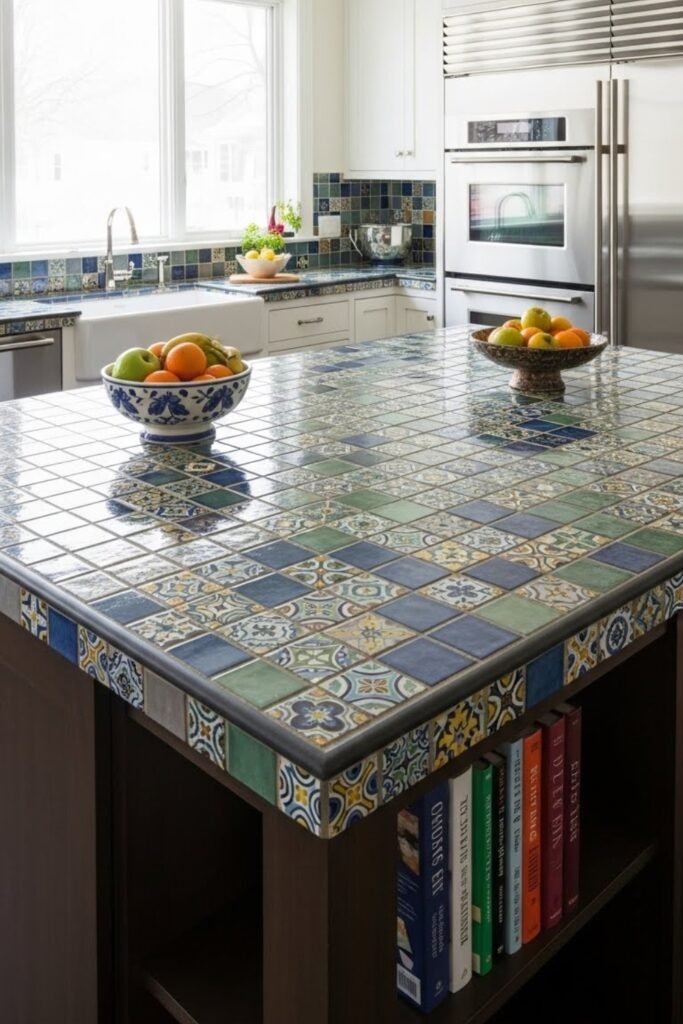 A tile top island adds color and texture to your kitchen. Build a sturdy base, then install tiles over a cement board surface. Choose ceramic, porcelain, or patterned tiles to match your style. Grout and seal the surface properly to make it easy to clean.