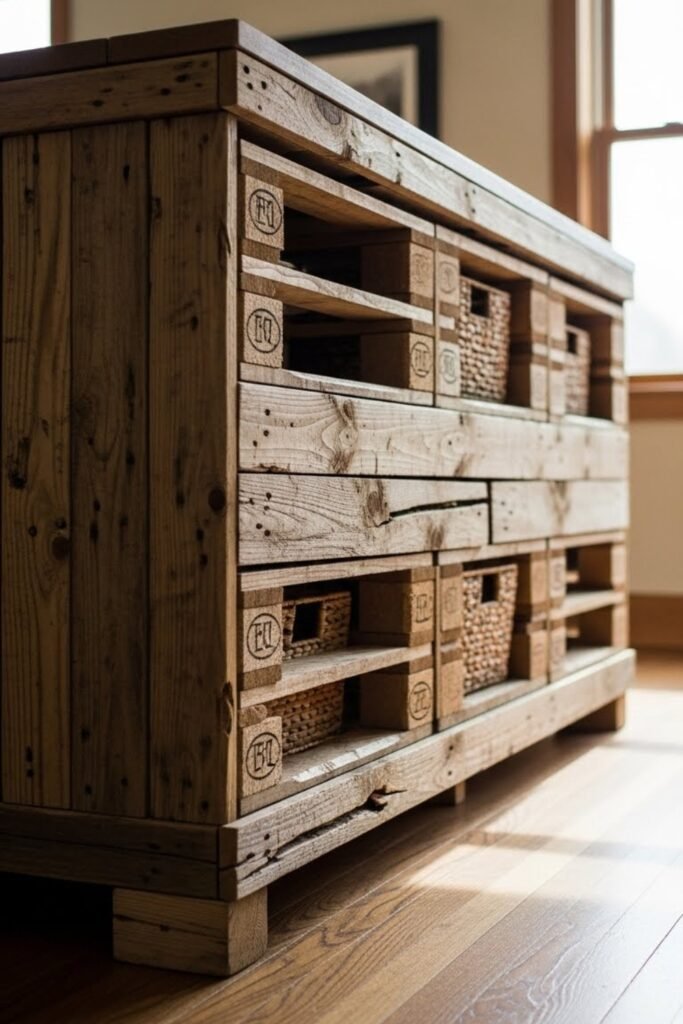 A pallet island is a low-cost DIY option that adds rustic charm to your kitchen. Stack and secure wooden pallets to create a sturdy base, then top it with plywood or reclaimed wood.