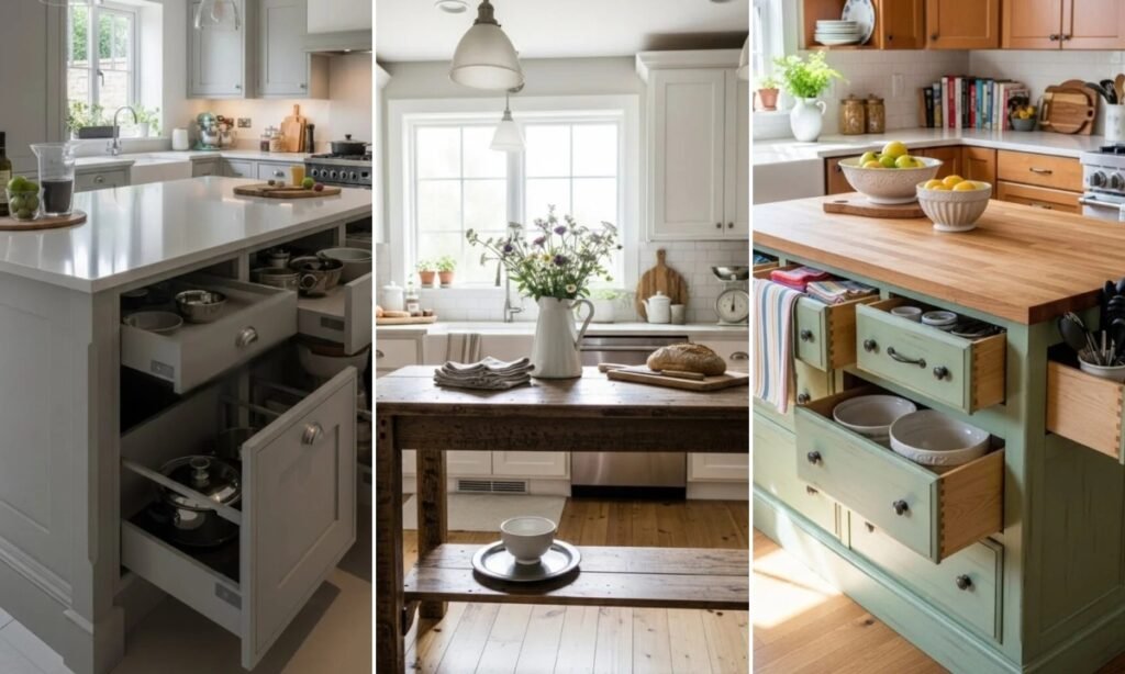 This idea offers plenty of hidden storage for cookware, pantry items, or small appliances. It’s a smart way to reuse cabinets while creating a custom-looking island.