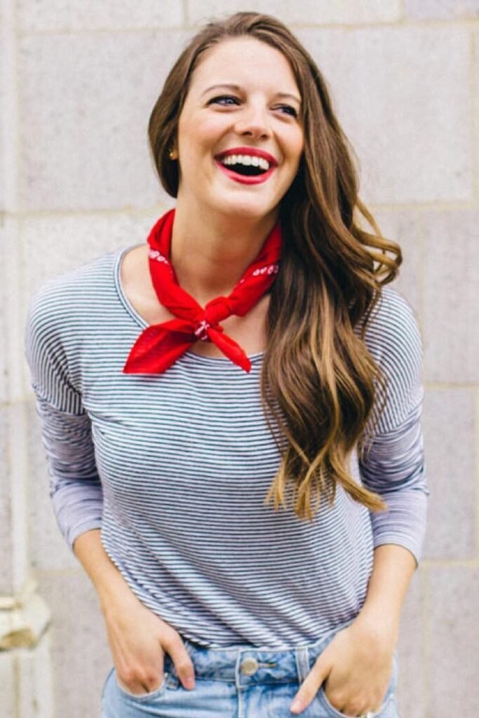 This goes great with striped t-shirts, jeans, or summer skirts. To make a new one, cut a small piece off the narrow end of the tie, fold the edges in, and tie it loosely at the front.