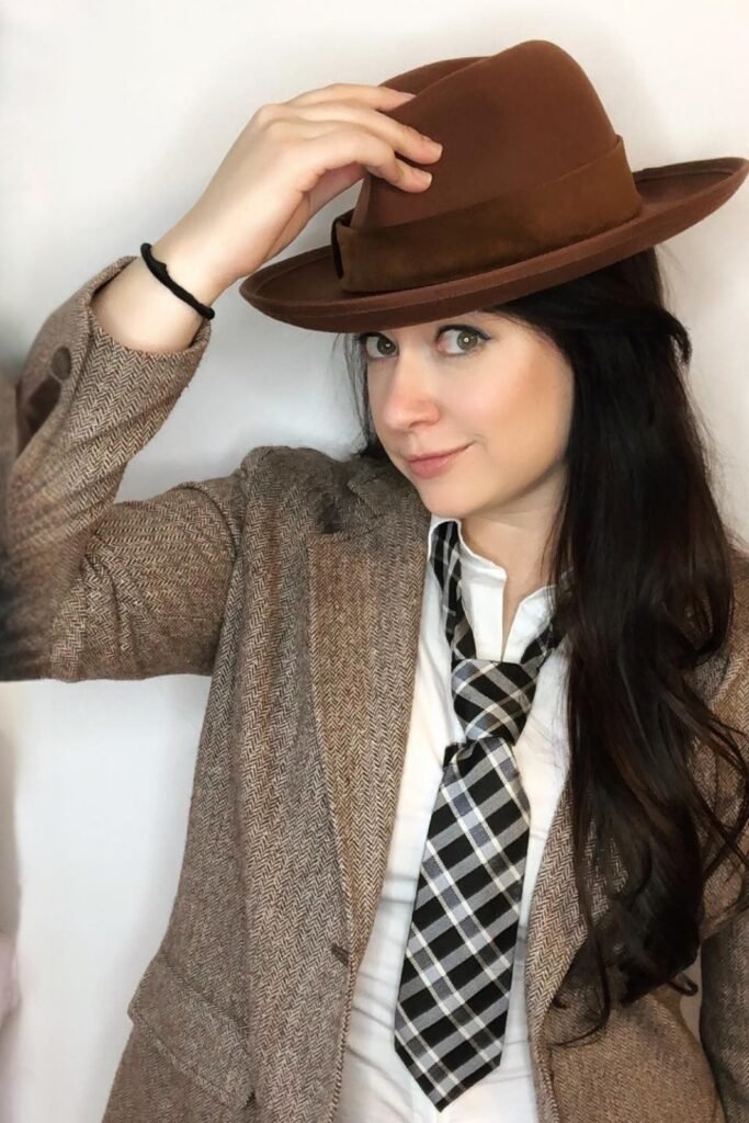 This amazing concept brings back memories of movies in fashion. Use a plaid or patterned tie with a tweed blazer and hat to make a famous movie outfit.
