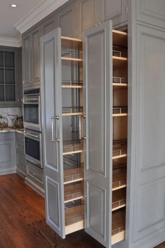 This works best inside tall pantry cabinets where floor space is limited but vertical storage potential is high.