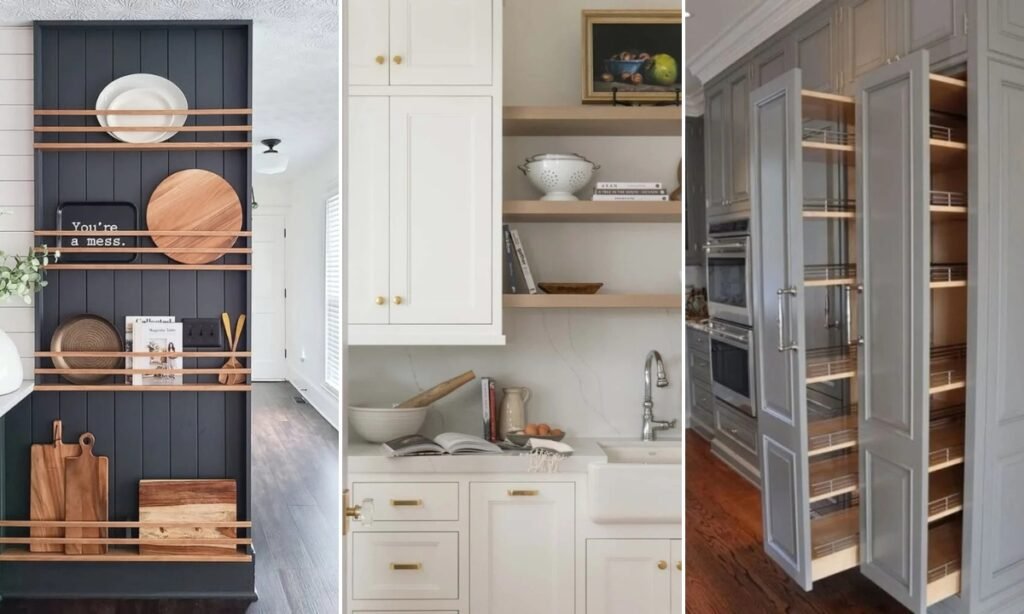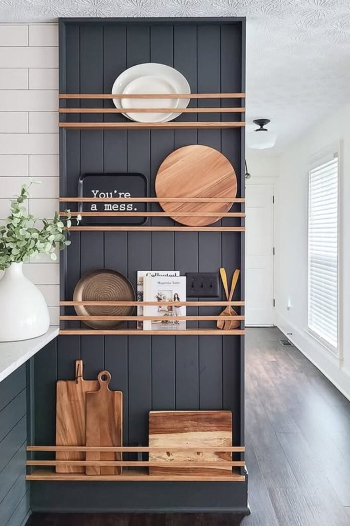 This idea works beautifully in kitchens where pantry shelving doubles as visual separation or accent storage.