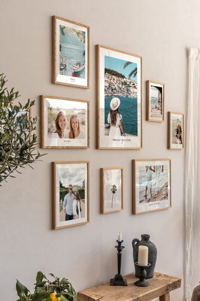 Everything feels calmer once one large photo anchors the wall and smaller frames support it naturally.