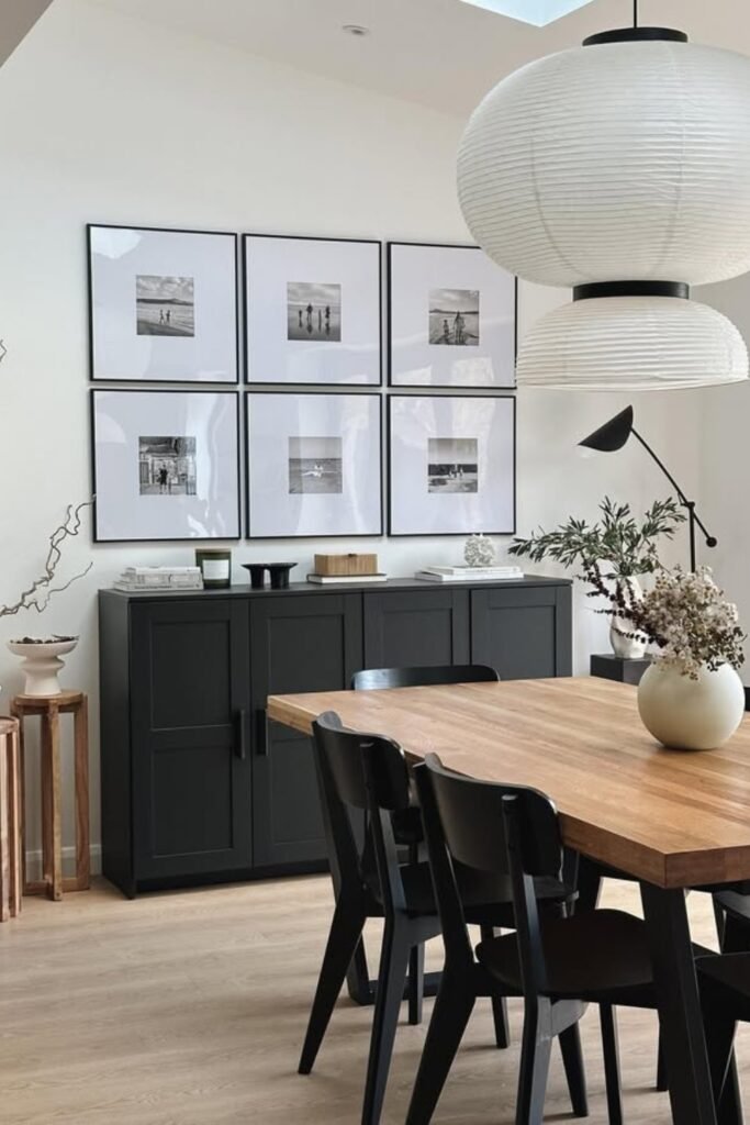 This DIY suits sideboards or credenzas where furniture width naturally defines the collage boundaries.