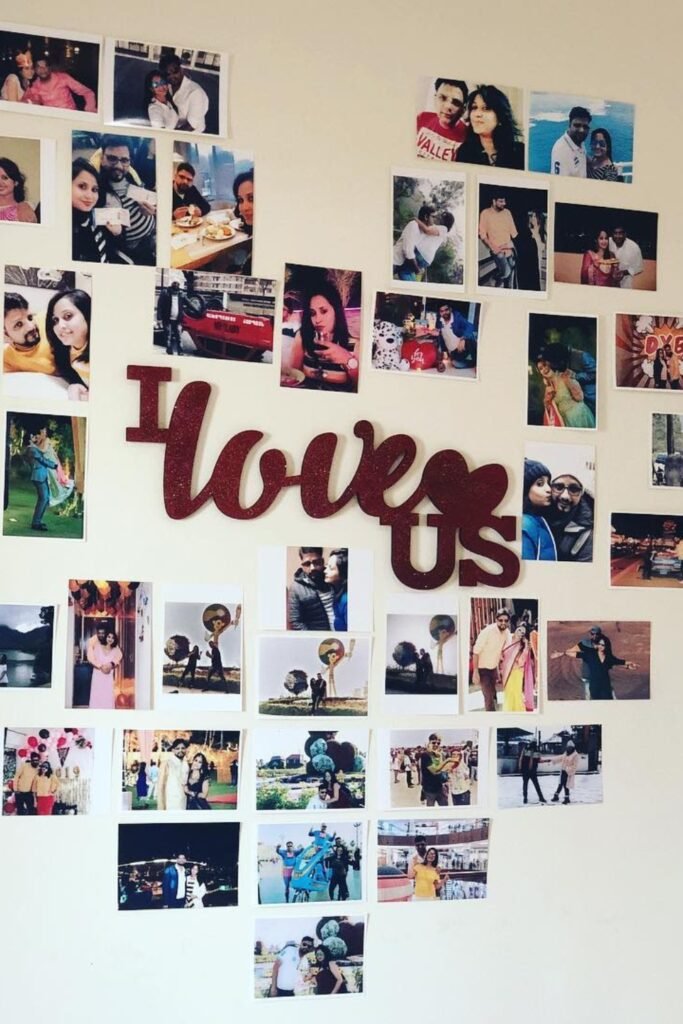 Personal stories feel stronger when photos form a recognizable shape rather than floating randomly across walls.