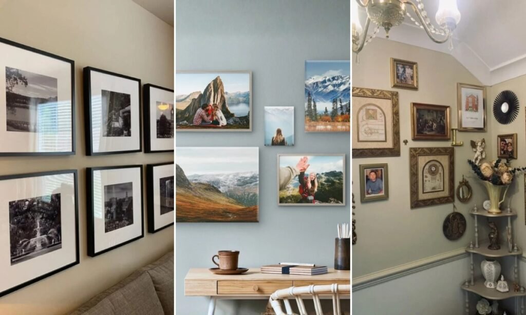 Instead of hanging one large frame, you combine several photos, prints, or memories to create a single visual story.