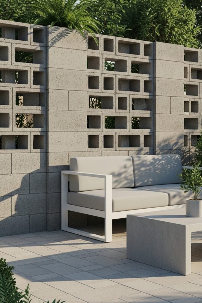 This idea works well for backyard boundaries and seating areas. You can paint the blocks or add plants inside the openings for visual interest.