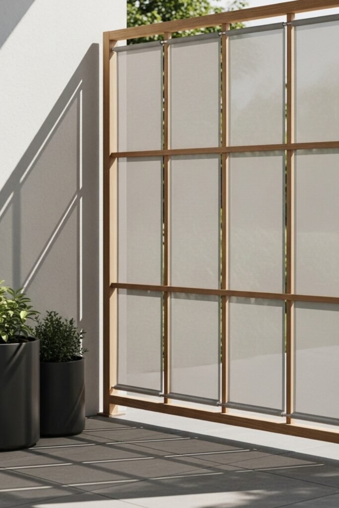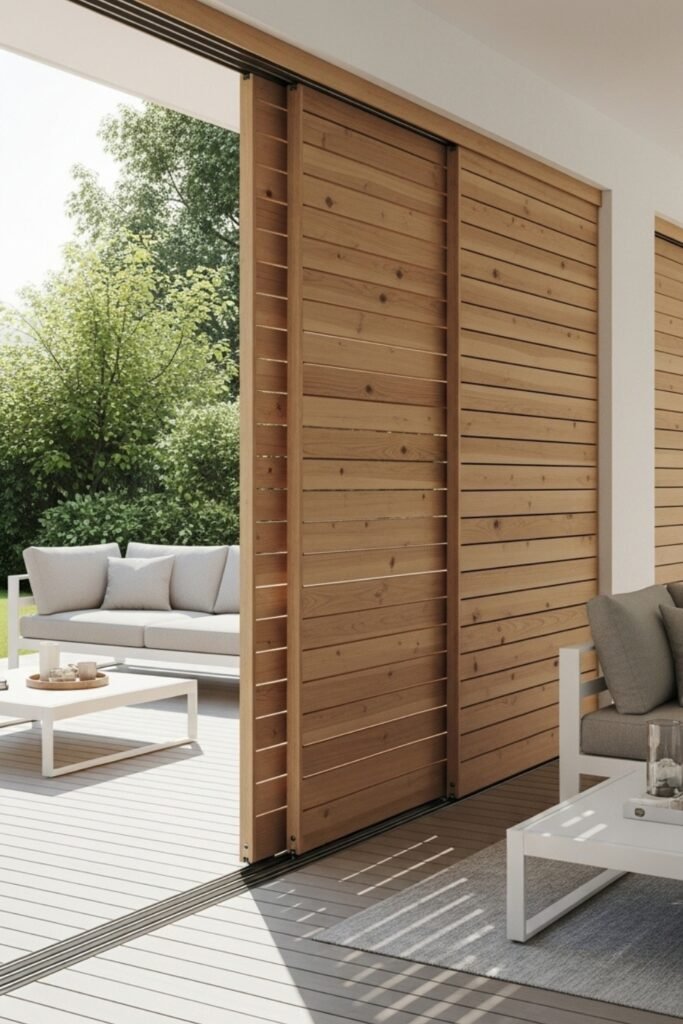 Sliding panel screens let you control privacy whenever needed. Install a simple track system and attach lightweight panels that move side to side.