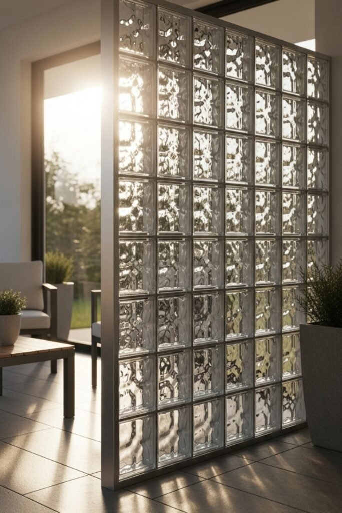 This idea works well for patios or garden corners where you want brightness without visibility. Glass blocks are durable and give a clean, modern appearance.