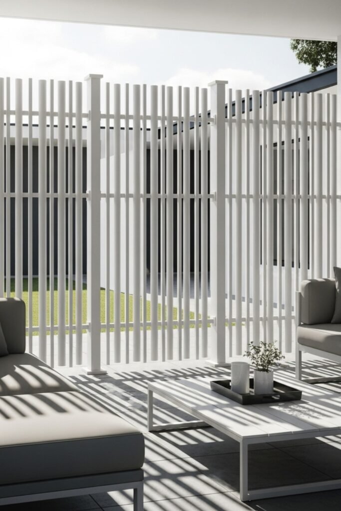 This idea works well for patios and modern outdoor spaces. PVC resists moisture and requires very little maintenance over time.