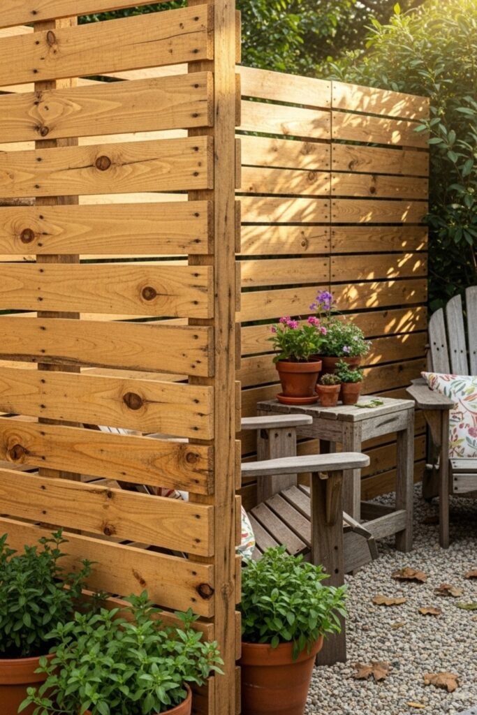 This idea works well in gardens, porches, and balconies. You can paint it for a clean finish or let climbing plants grow over it for extra coverage.
