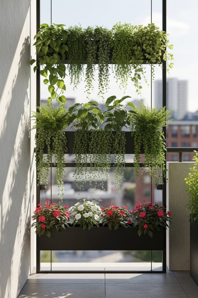 This works great for balconies and patios. Choose trailing or dense plants to increase privacy while keeping the space fresh and open.