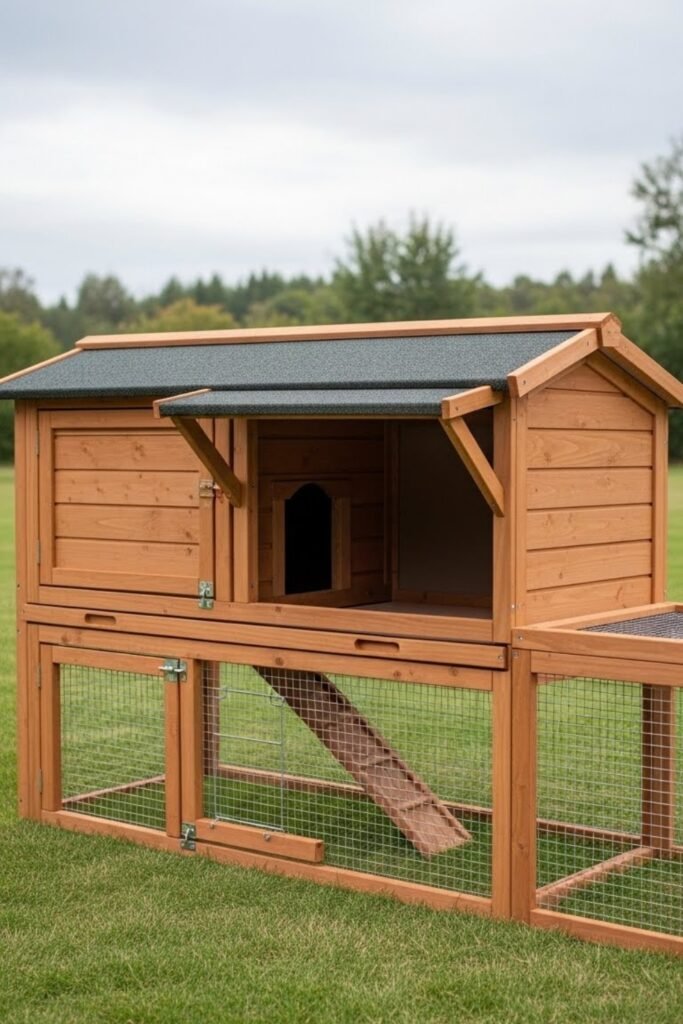 The interior can be divided into sleeping and feeding zones. This option is ideal for long-term outdoor housing where durability matters.